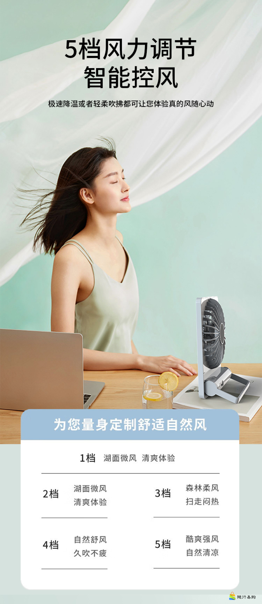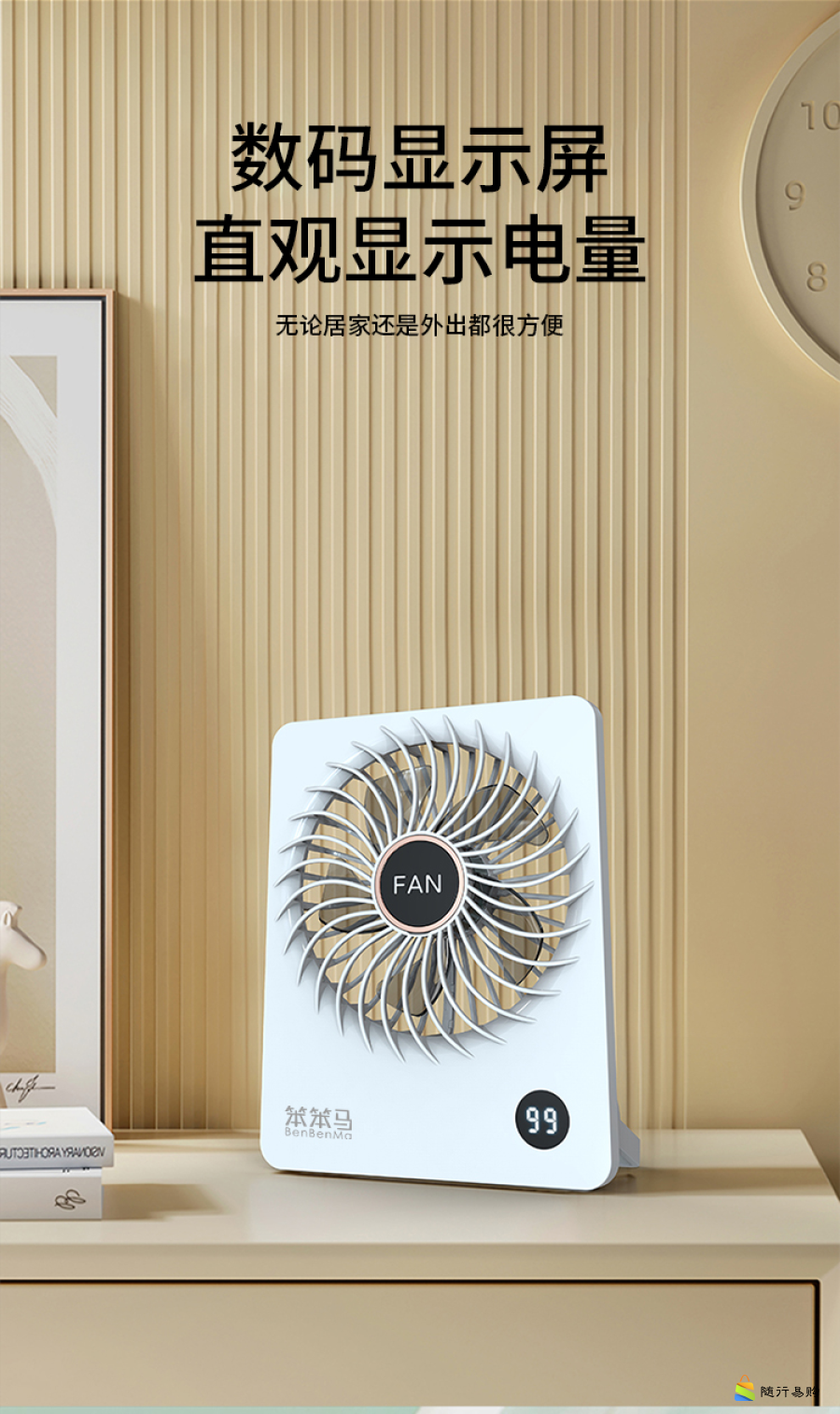 大扇面带香薰桌面小风扇USB可充电大风力便携电风扇BF10