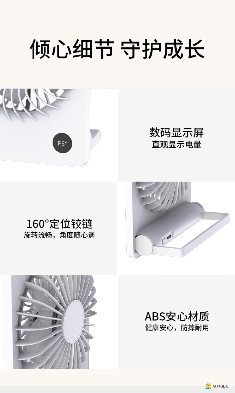 大扇面带香薰桌面小风扇USB可充电台大风力便携电风扇BF10