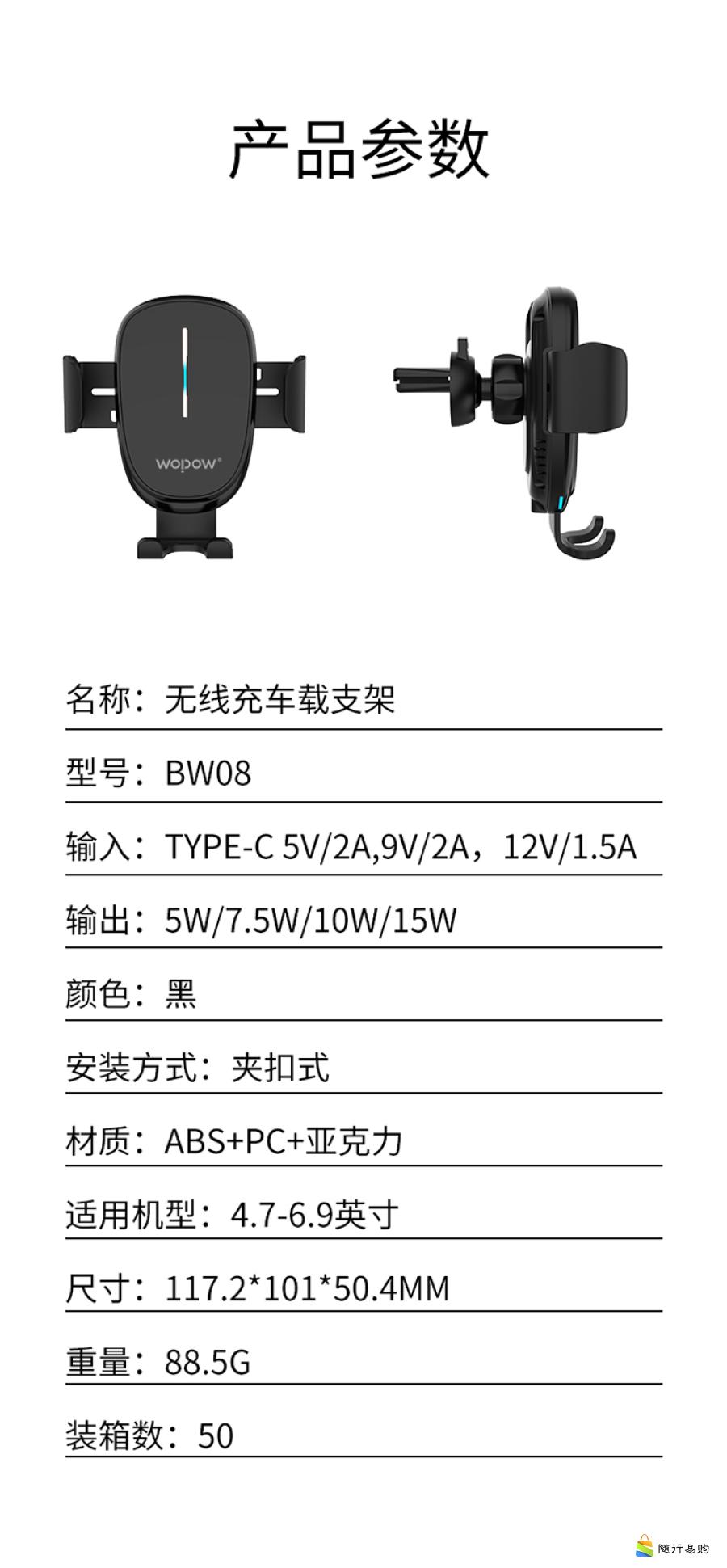 无线充车载支架BW08