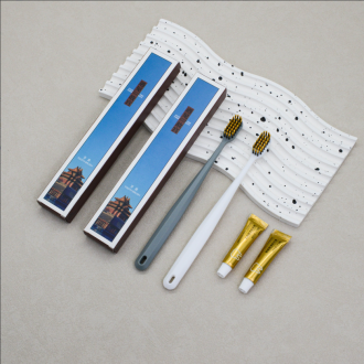 灰白八角喷砂6g氨基酸环保涂层纸牙刷克重:全新料10克pp聚丙烯 刷毛:0.15mm咖棕火焰毛 牙膏:6g氨基酸牙膏 包装:三边封环保涂层纸 孔数:31孔(1000/箱)整箱发货