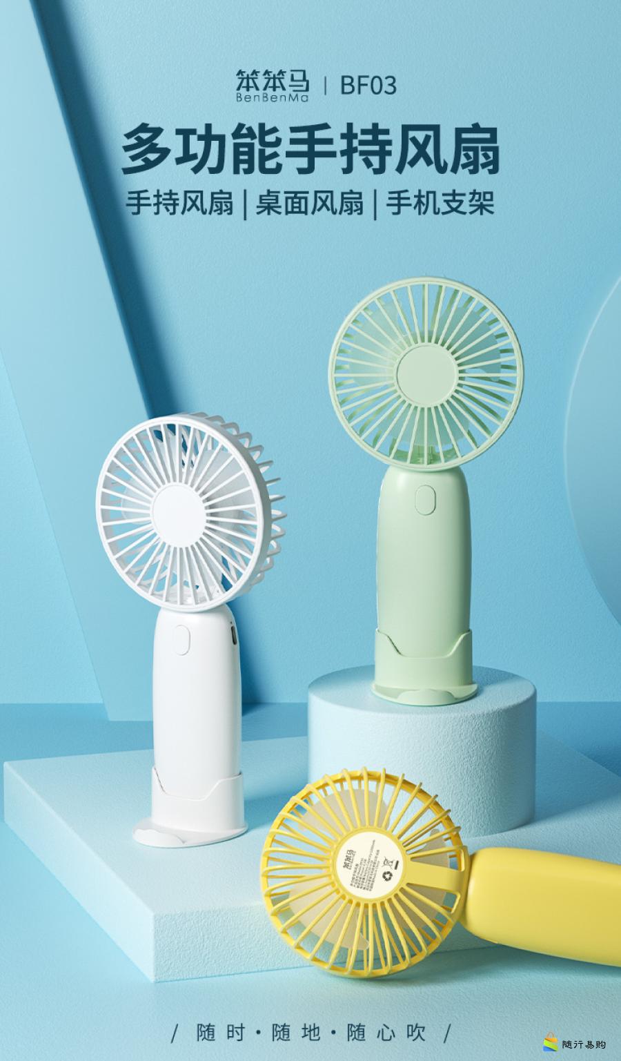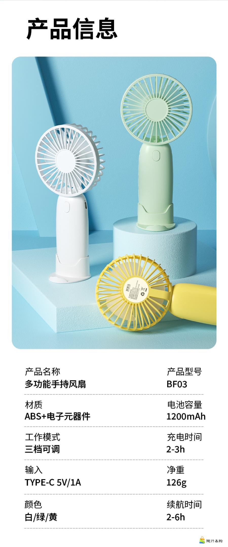 迷你手持风扇三档风力清凉耐用降温充电大风力便携式BF03