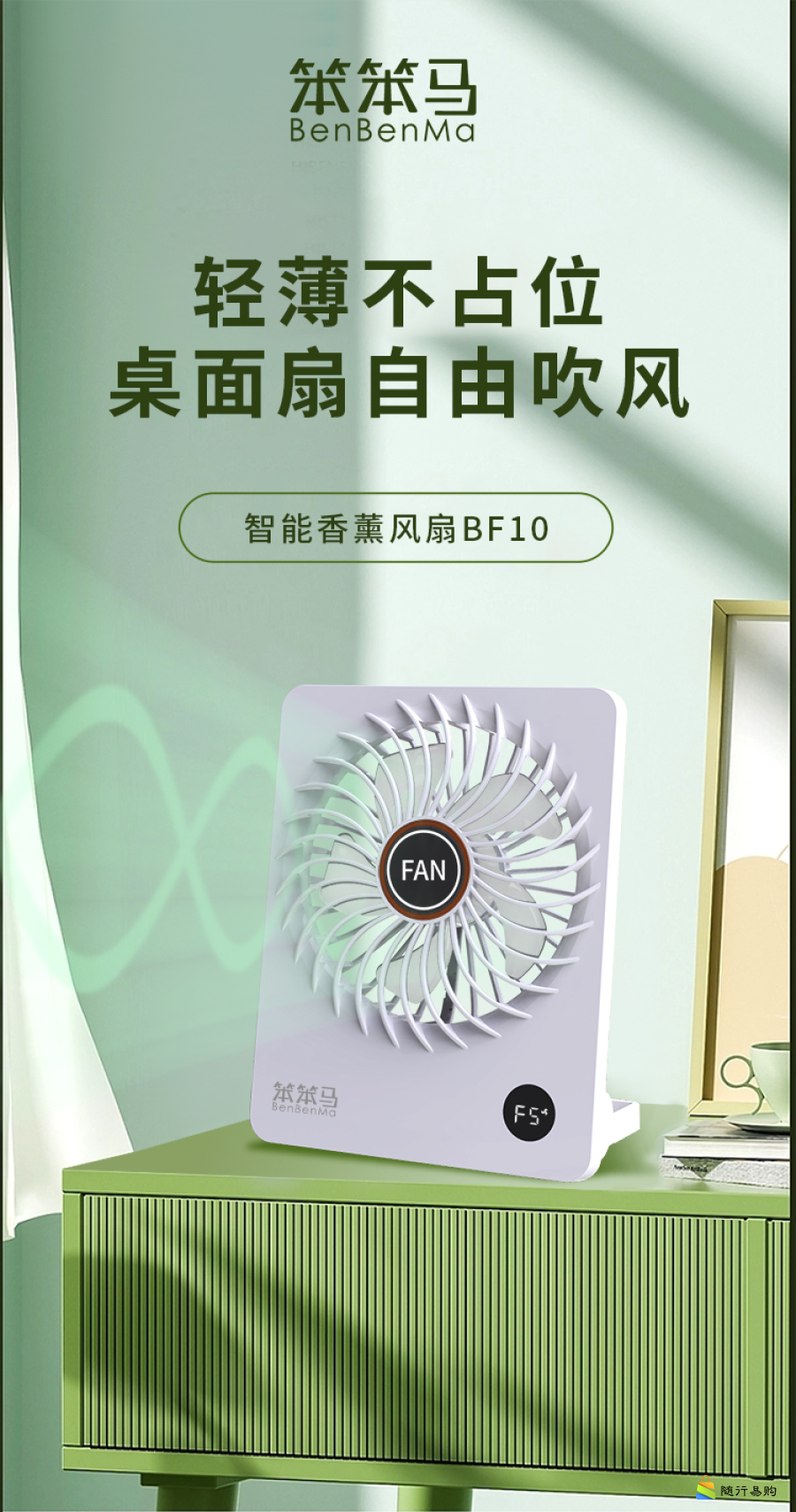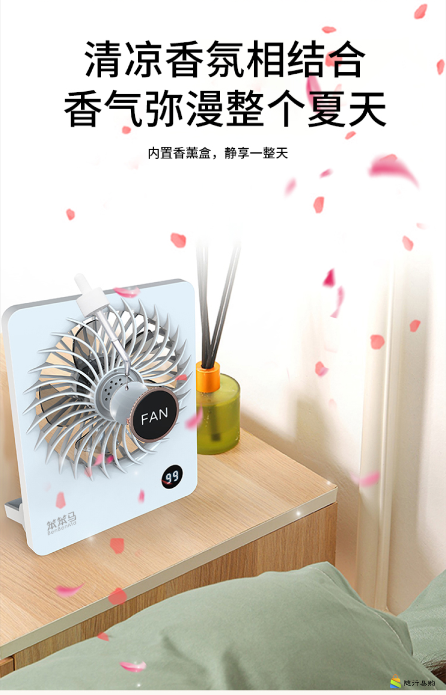 大扇面带香薰桌面小风扇USB可充电台大风力便携电风扇BF10