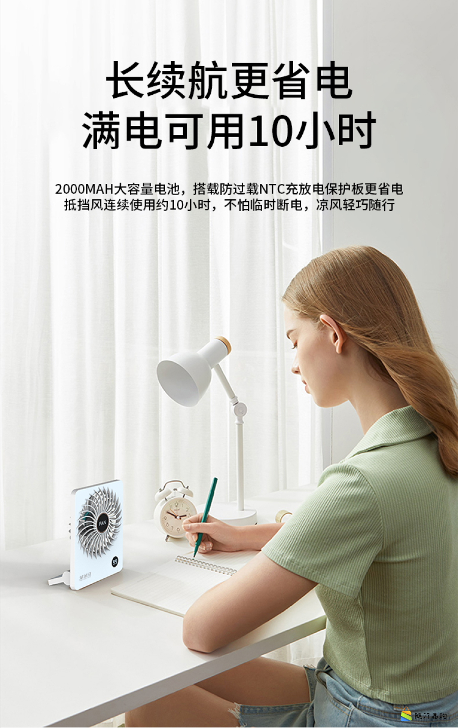 大扇面带香薰桌面小风扇USB可充电大风力便携电风扇BF10