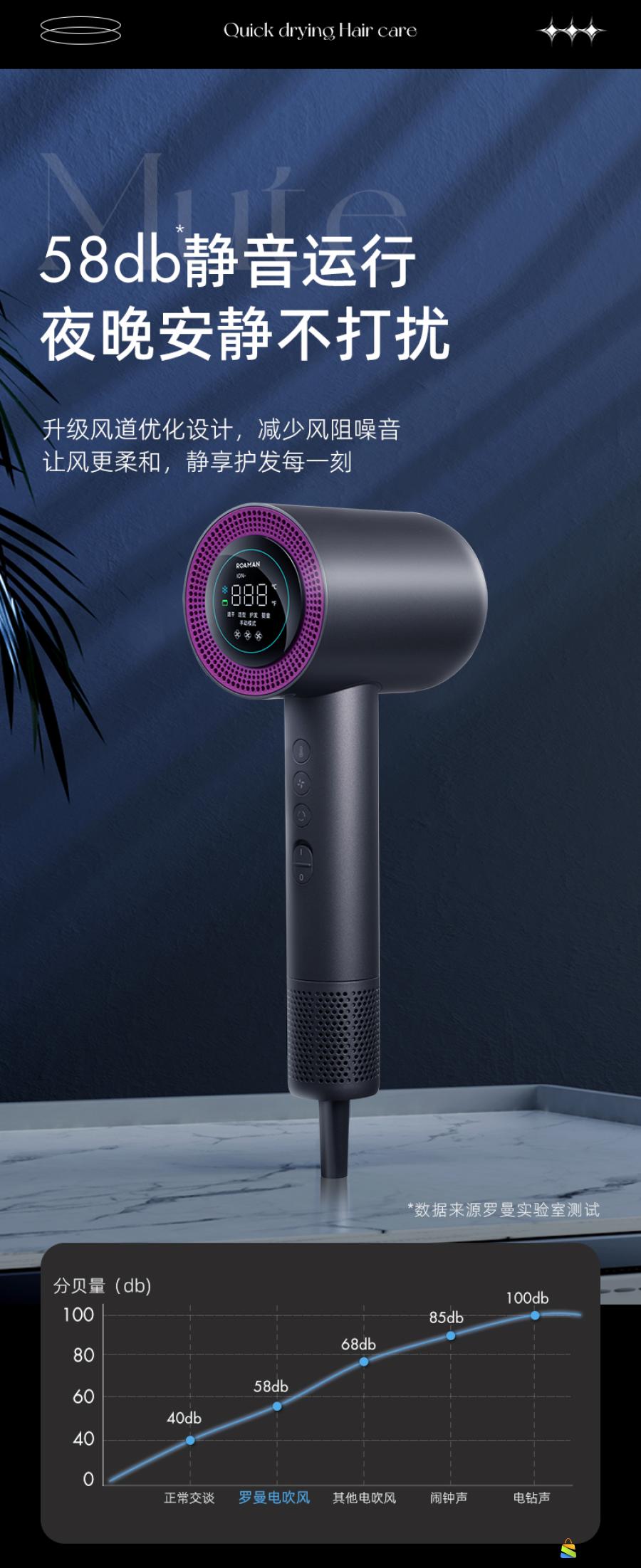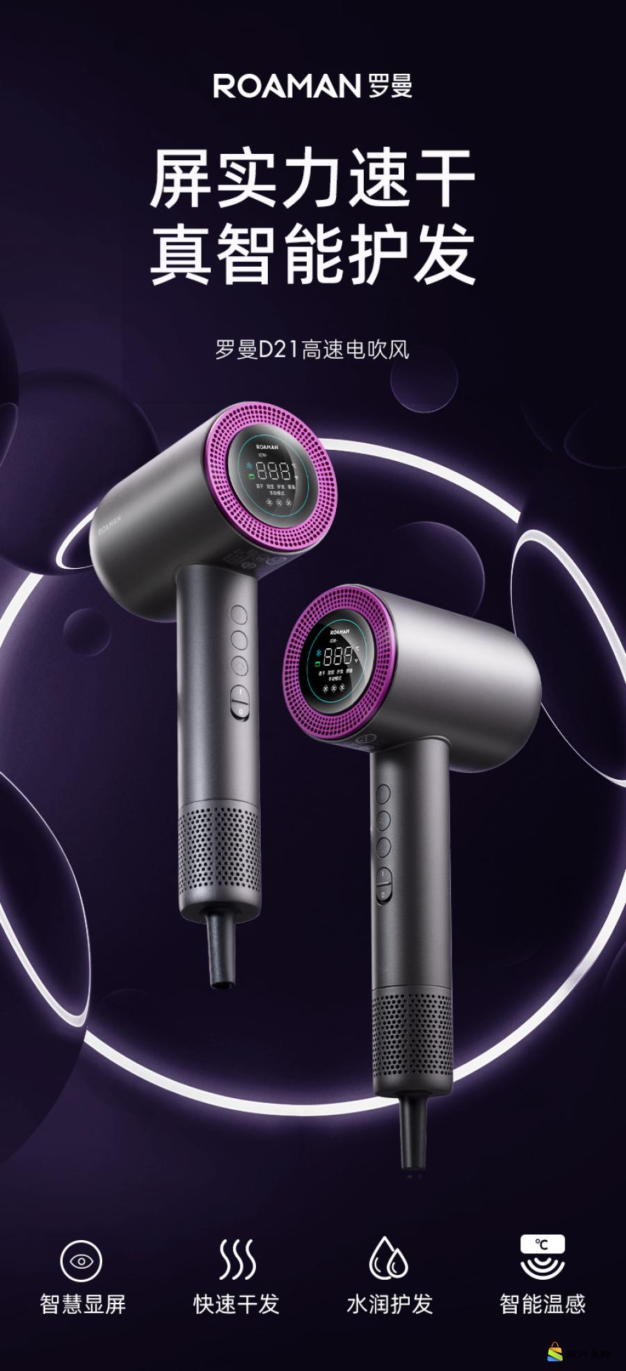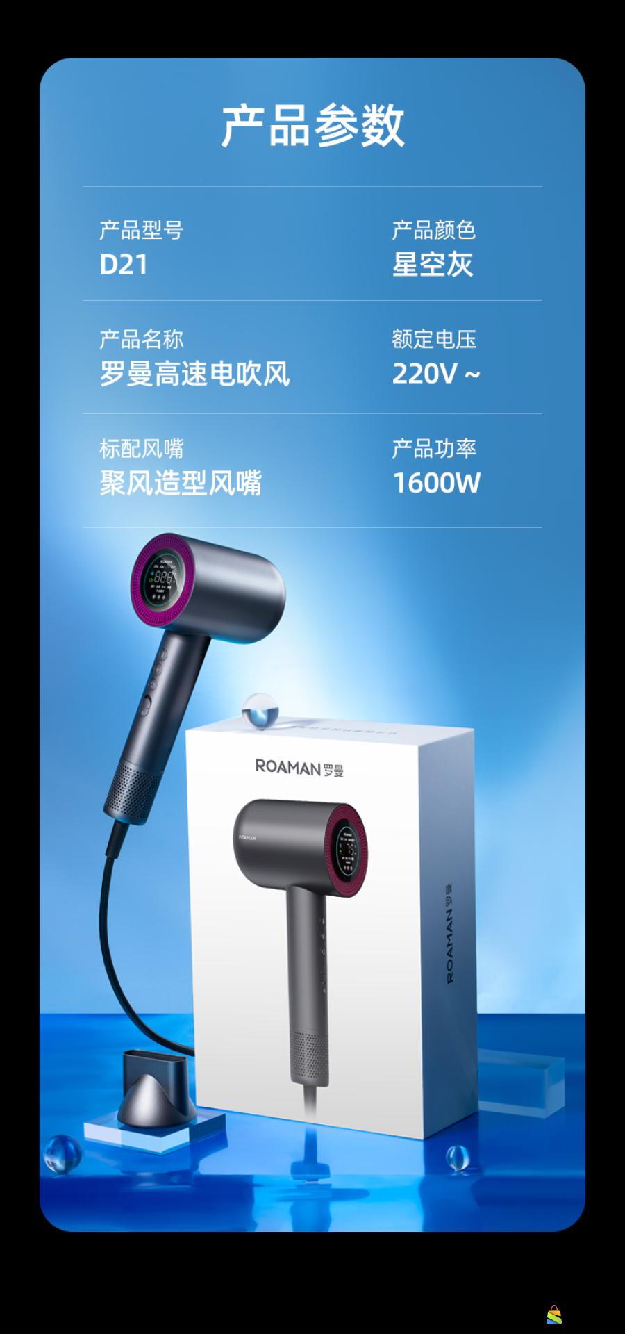 ROAMAN罗曼智能屏显负离子高速电吹风D21