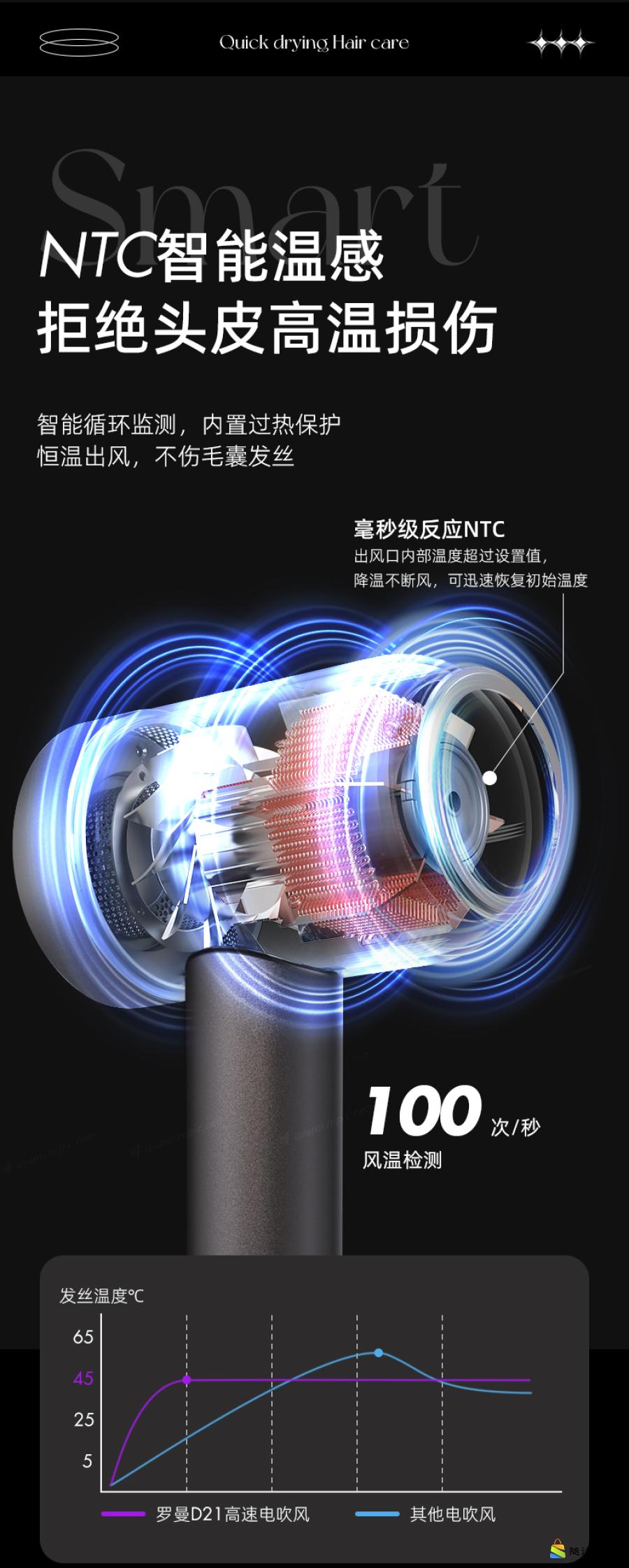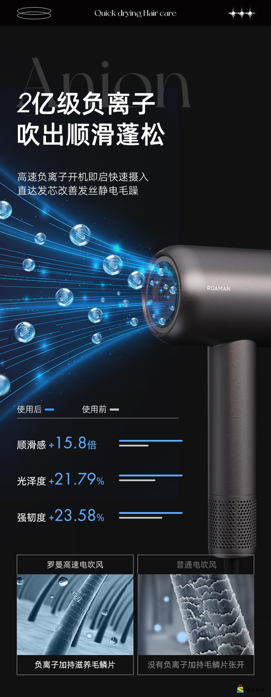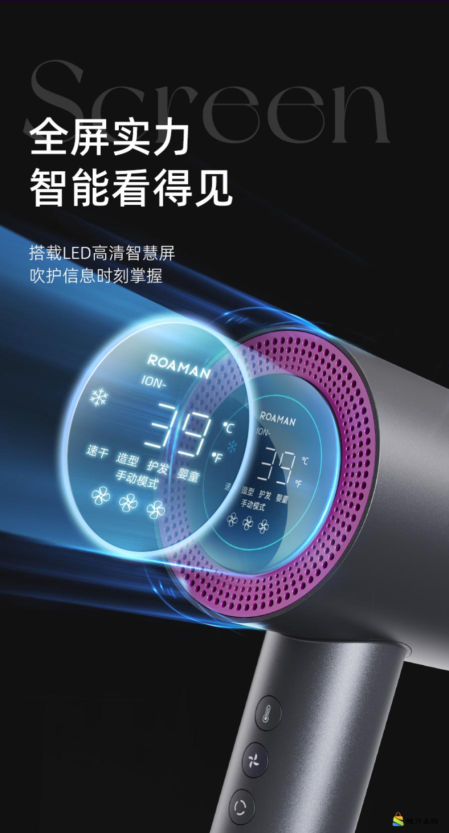 ROAMAN罗曼智能屏显负离子高速电吹风D21